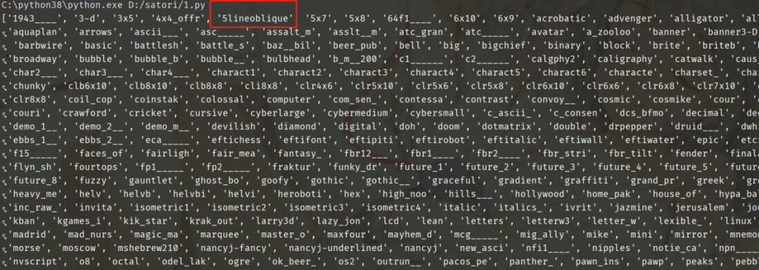 Figlet提供了font、direction、justfity、width四个字段,刚才说这个模块的花式字体多,来看看有多少吧:
