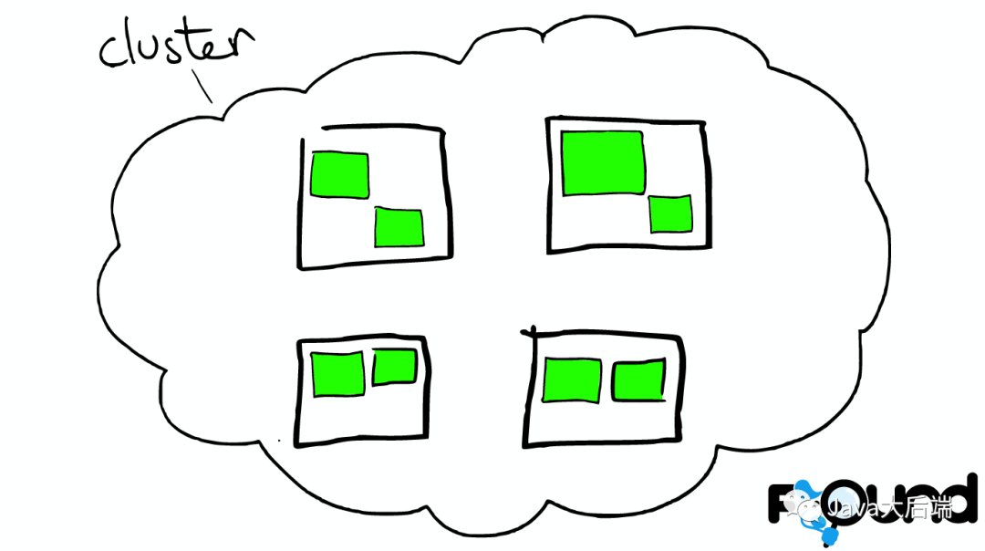 在一个索引下,分布在多个节点里的绿色小方块称为分片——Shard。
