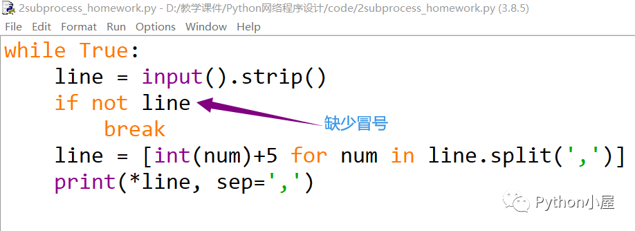 修改被测程序文件,故意制造语法错误,如图,