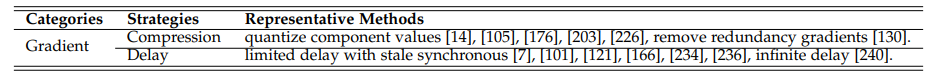 基于文中的实验,我们在本小节中对联合合作方法进行汇总讨论。首先,我们可以发现,梯度压缩不仅可以减少每次迭代的时间开销,而且可以降低优化的总体开销。例如,与完整的32位梯度相比,使用4位QSGD对16-GPU的AlexNet进行训练的实验中,当我们维持训练精度相同时,算法的通信加速比会超过4倍,而且总体的成本仅提高了2.5倍。特别是对于线性模型,SketchML可以加速原有的优化器,并实现4倍以上的提升。值得注意的是,根据实验结果的对比我们发现,通信与计算比率较大的模型和带宽较小的网络可以从压缩中获益更多。其次,梯度延迟还减少了数据通信量,显著增加了人工在计算上的参与比例。例如,在使用本地更新算法时,CoCoA能够以比非本地化的最佳更新方法快25倍的速度实现收敛,也能实现更高的模型精度。此外,在有大量人工参与的情况下,通信成本的降低与随之带来的延迟几乎呈现了线性关系。