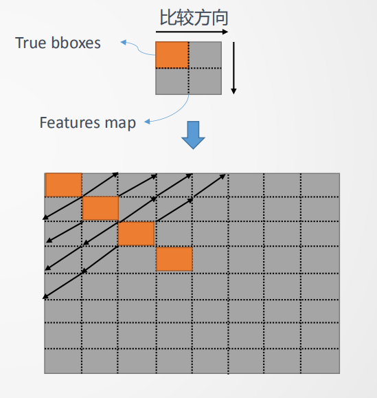 YOLO的Loss计算量较大,我们对其进行了特殊的优化。YOLO模型有三个Feature map层,传统寻找正负样本的时候,真正的Bounding box会在Feature map上会做一个遍历比较,先横向遍历然后再纵向遍历,遍历的过程中寻找Feature map点和Bounding box IOU最大的值作为正样本。因为图像的size很大,所以Feature map也很大,这使计算Loss耗时过长。计算Loss优化方法如下,由于x轴方向上的块和y轴方向上的块关于对角线对称,所以我们计算Feature map和Bounding box 的IOU的时候按照中轴线对角点方向进行遍历如图16所示。先计算对角线方向上的的块,然后再计算每个feature map块两边的块。这种优化方法可减少大量的计算量。另外,在某个点上向两边遍历所有的Feature map块的时候有一些计算技巧特点,比如往右上开始遍历的时候,x轴与y轴是关于对角线对称变化的,我们可以预估这种变化,从而有意识地去寻找最大的Anchor位置,然后丢弃其他信息,通过这样的优化方法也可以大量的减少计算量。我么通过上述方法优化了Loss计算之后单卡性能有约10%的提升。