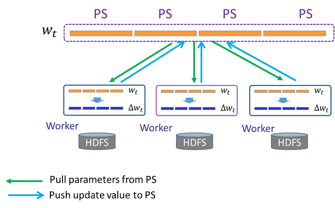 Angel机器学习平台是腾讯自研的基于传统Parameter Server架构的高性能分布式的机器学习平台如图1所示,详细架构图如图2所示。它是一个全栈机器学习平台,支持特征工程、模型训练、模型服务、参数调优等,同时支持机器学习、深度学习、图计算和联邦学习等场景。已经应用在众多业务如腾讯内部广告、金融和社交等场景,吸引了包括华为、新浪、小米等100多家外部公司的用户和开发者。