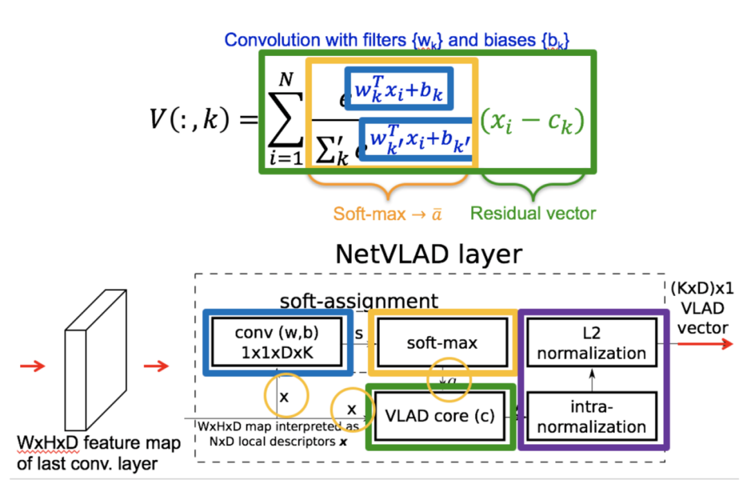 NeXtVLAD如图13则通过将ak符号函数变成一个可导函数来得到一个更好距离效果,NeXtVLAD的向量计算公式为: