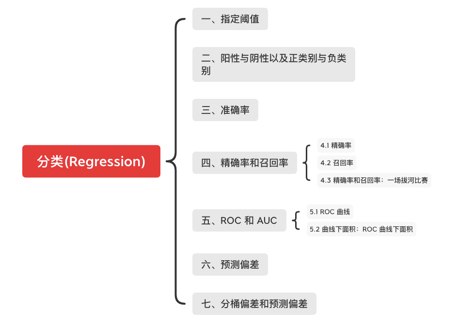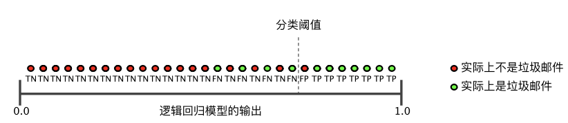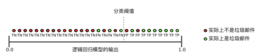 “调整”逻辑回归的阈值不同于调整学习速率等超参数。在选择阈值时,需要评估你将因犯错而承担多大的后果。例如,将非垃圾邮件误标记为垃圾邮件会非常糟糕。不过,虽然将垃圾邮件误标记为非垃圾邮件会令人不快,但应该不会让你丢掉工作。