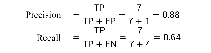 ⭐️ 注意:如果模型的预测结果中没有假负例,则模型的召回率为 1.0。