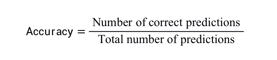 其中,TP = 真正例,TN = 真负例,FP = 假正例,FN = 假负例。让我们来试着计算一下以下模型的准确率,该模型将 100 个肿瘤分为恶性 (正类别)或良性(负类别):