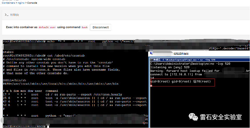 可以看到反弹了shell回来,那么是不是这个宿主机Ubuntu呢?那肯定是,随便执行点命令看看: