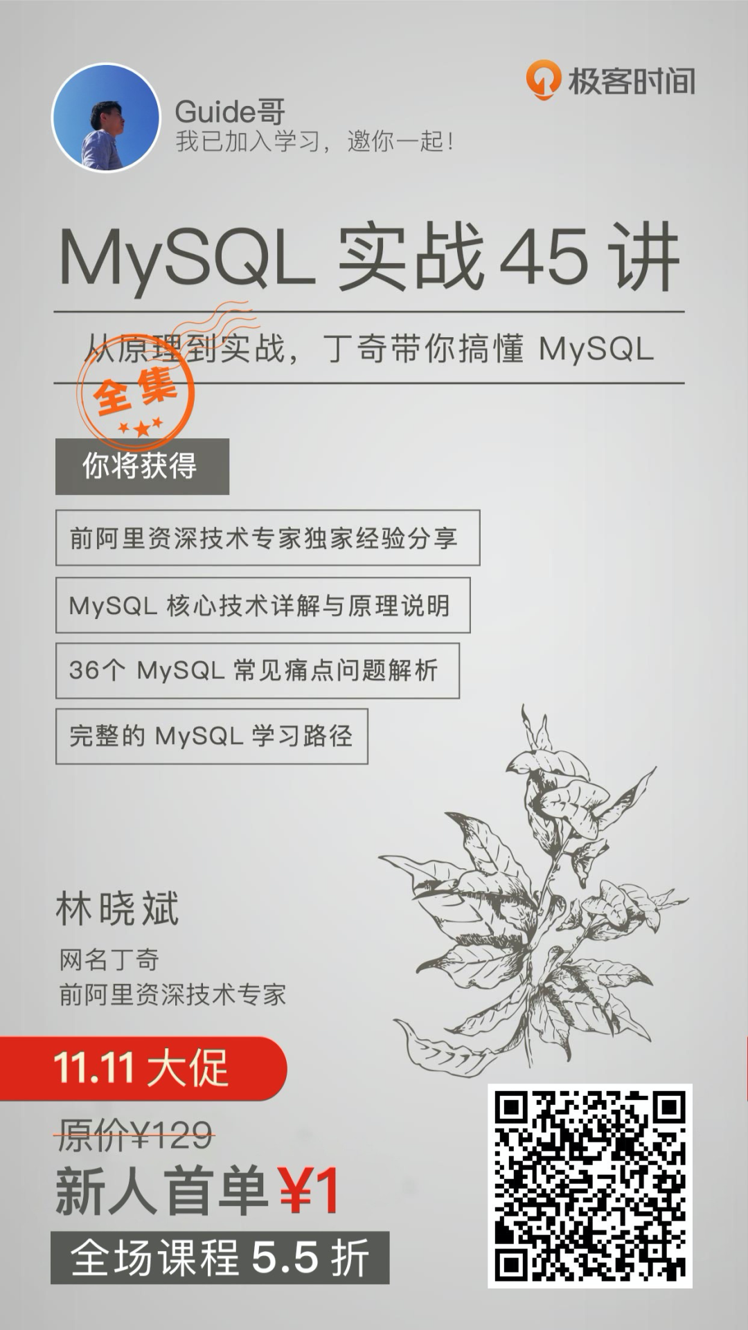 赶上双十一,极客时间做大促,原价¥129 的专栏,新用户现在首单仅 ¥1!