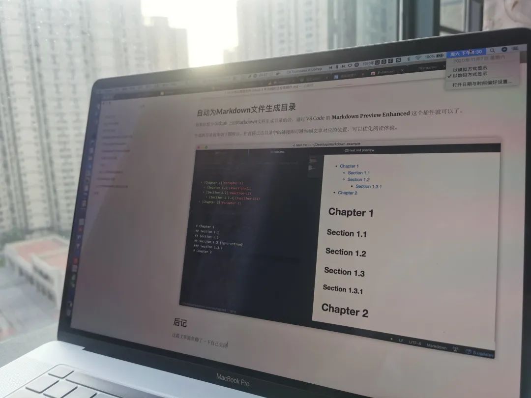 如果你想为 Github 上的 Markdown 文件生成目录的话,通过 VS Code 的 Markdown Preview Enhanced 这个插件就可以了。