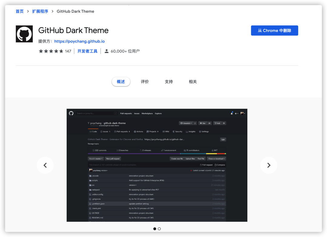 通过 GitHub Dark Theme 这个 Chrome 插件你可以将 Github 的主题变为夜间样式。
