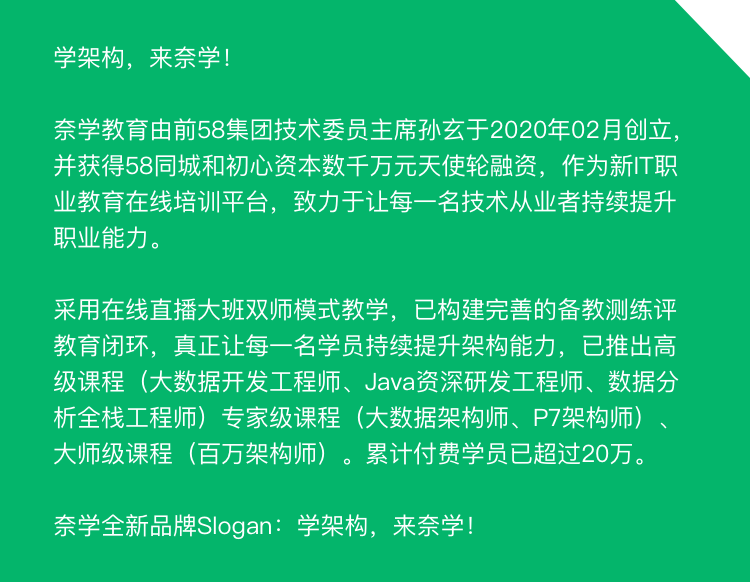 由前58技术委员主席孙玄联手58到家CTO沈剑老师,结合10多年一线大厂实践经验,打造的《3天挑战架构师级MySQL海量数据设计与实践 》精品课带你快速掌握MySQL核心架构技术,如果学完后还不能真正掌握MySQL架构体系,来找我算账就好……
