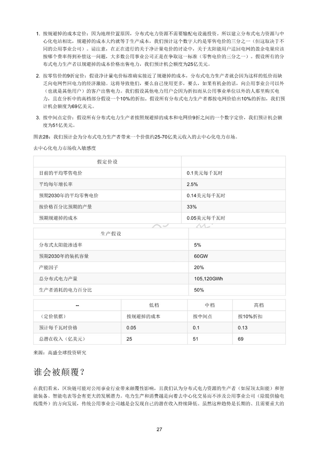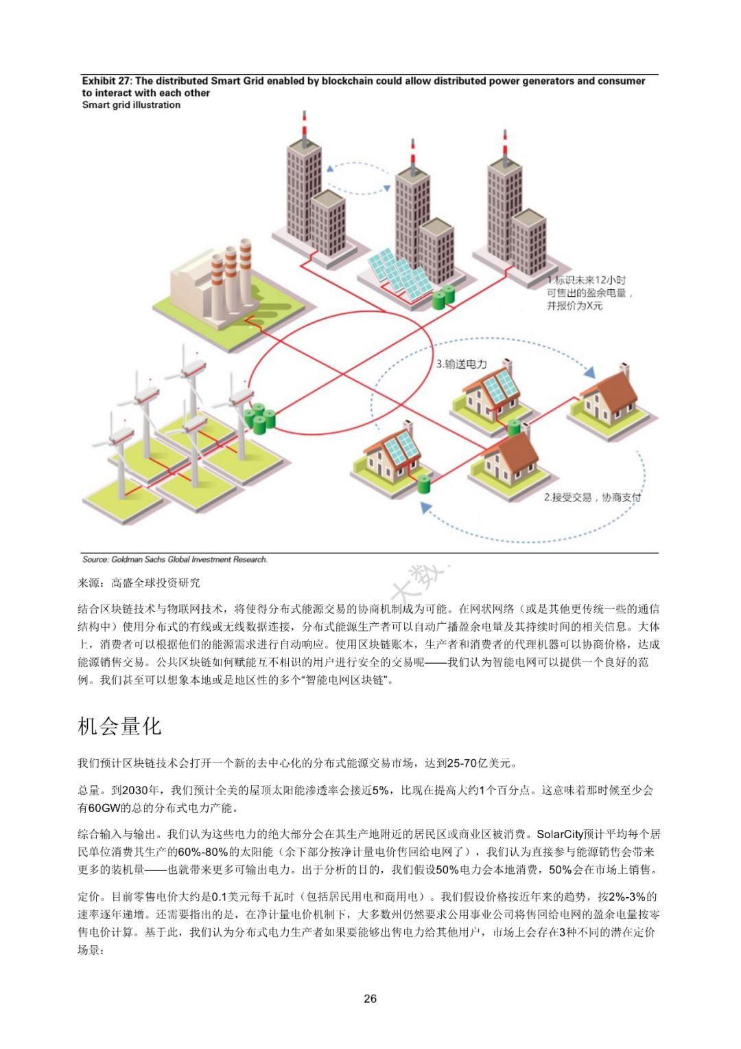 以下为高盛报告中有关区块链如何构筑分布式智能电网的内容: