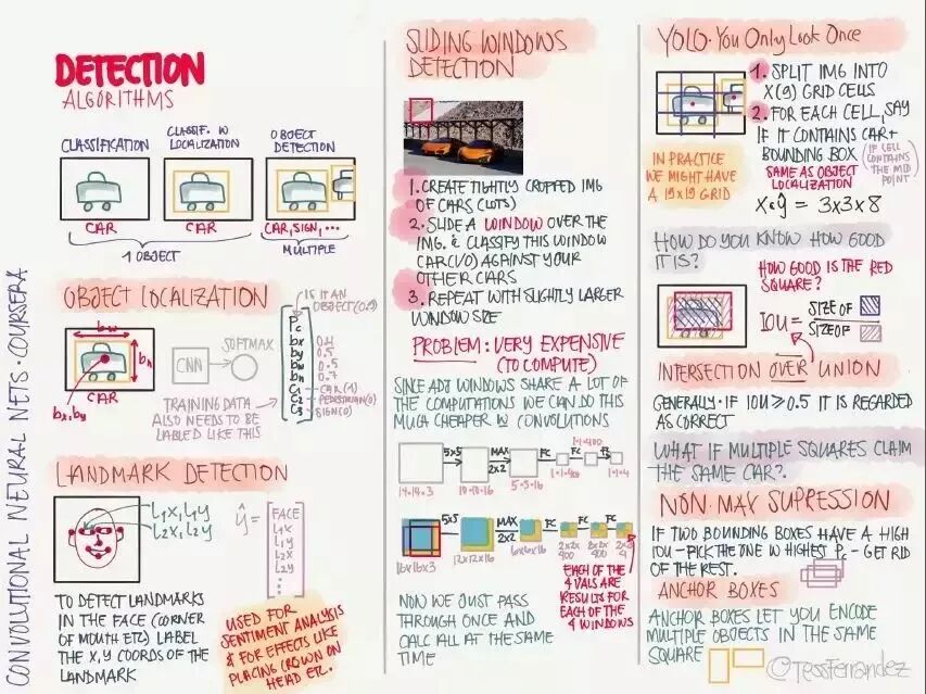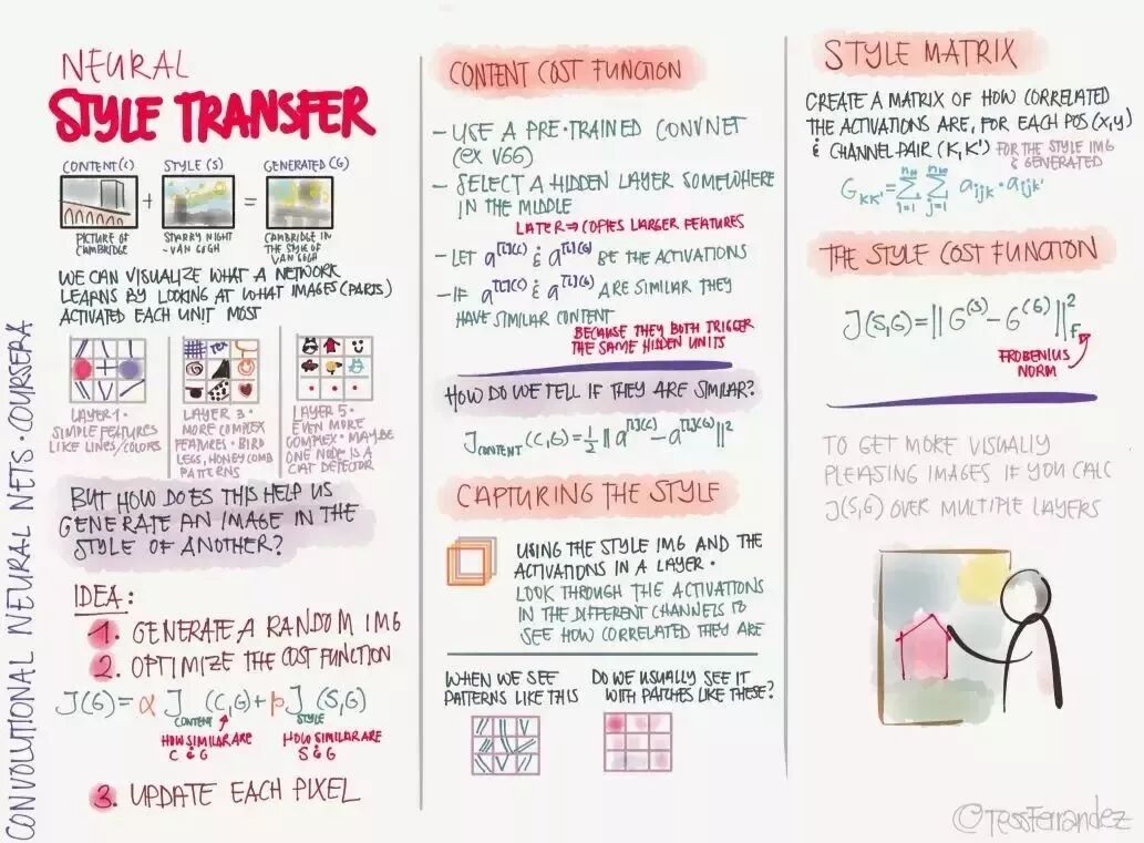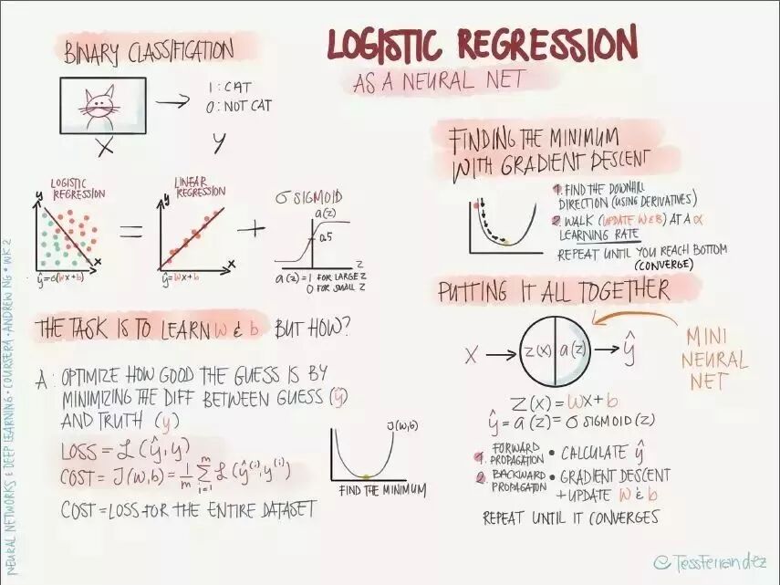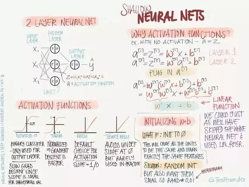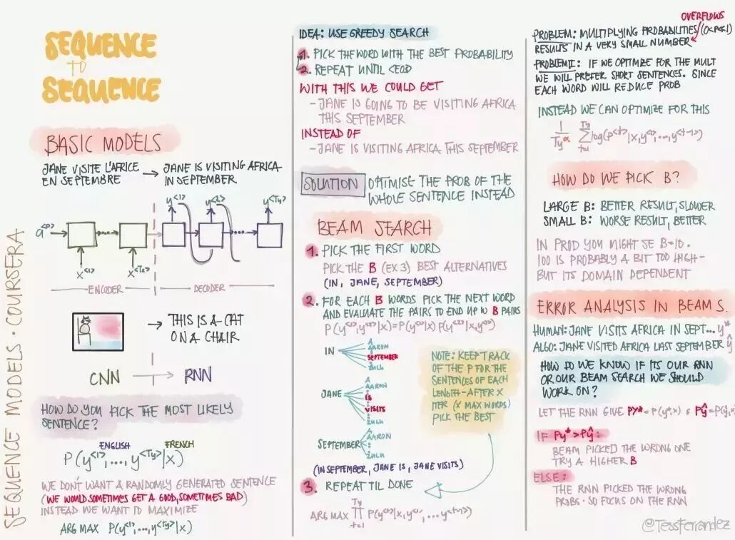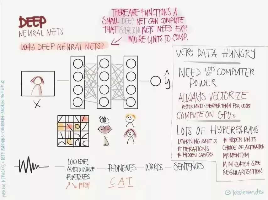 吴恩达在推特上展示了一份由 TessFerrandez 完成的深度学习专项课程信息图,这套信息图优美地记录了深度学习课程的知识与亮点。因此它不仅仅适合初学者了解深度学习,还适合机器学习从业者和研究者复习基本概念。这不仅仅是一份课程笔记,同时还是一套信息图与备忘录。下面,我们将从深度学习基础、卷积网络和循环网络三个方面介绍该笔记。
