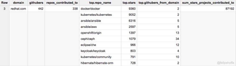 RedHat 的 GitHub 贡献者为 442 人,为 338 个软件库贡献代码,共获得 87192 颗星,比亚马逊贡献项目的数量更多,排在第三位。