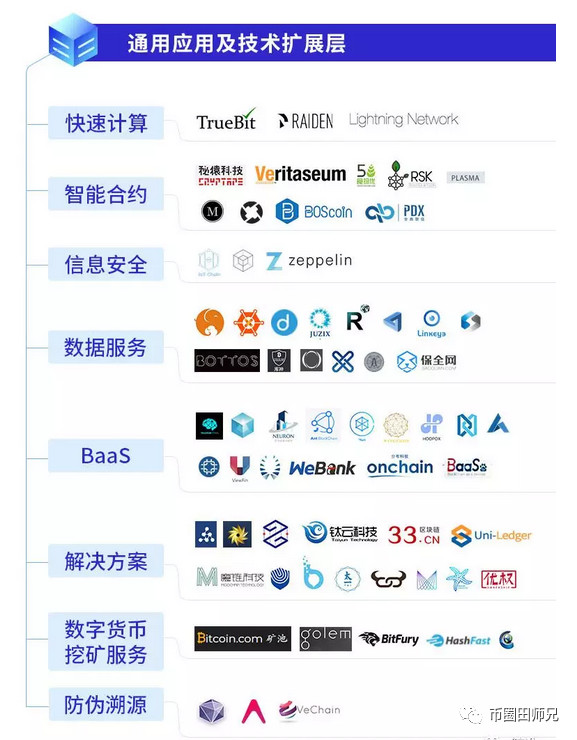去年年底,鲸准研究院发布了中国区块链行业分析报告”,在其中对现阶段底层,技术扩展层和最上层的行业应用层生态进行了描绘。