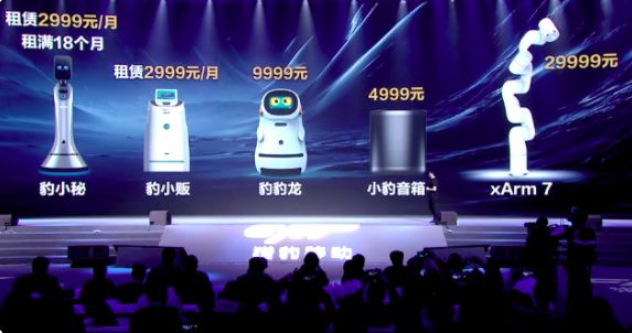 与之前的宣传图略有出入的是,在刚刚结束的发布会上,没有出现宣传图中的图像识别和智能记忆枕,但发布了豹小秘、小豹 AI 音箱、豹小贩、豹豹龙、机械臂 xArm7 共 5 款产品。