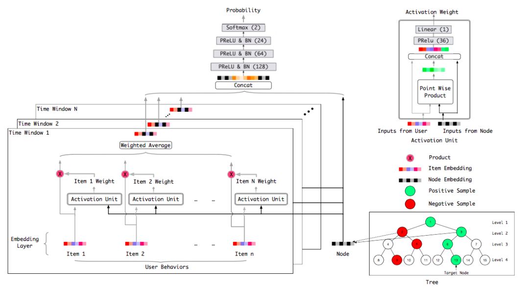 基于Attention结构使用(attention-DNN)与否、树节点Embedding是(DNN)否(product-DNN)进入输入层TDM也有多个版本。