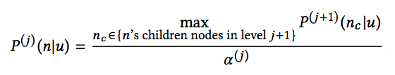 即用户对第j层父亲节点兴趣的偏好概率正比于用户对第j+1层孩子节点兴趣的偏好概率最大值,其中