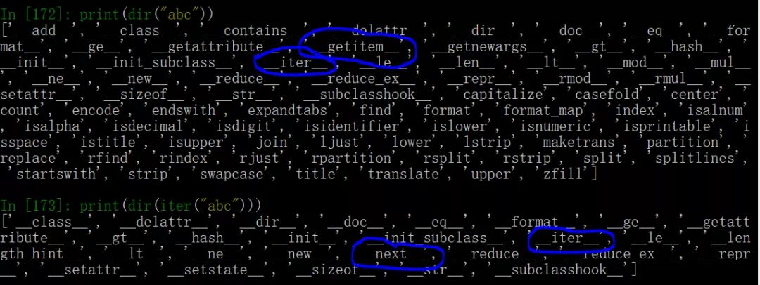 # ob2它遍历 for i in ob2: print(i, end = " ") # a b c for i in ob2: print(i, end = " ") # 无输出 # ob2自遍历 ob2.__next__() # 报错:StopIteration