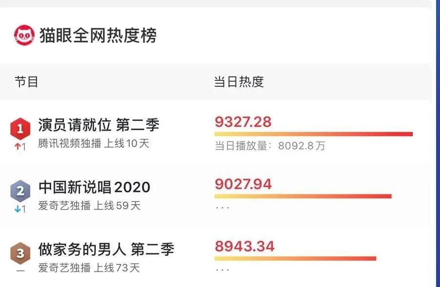 《演员请就位2》正式开播半个多月,已经登上猫眼综艺热度榜单第一,拿下近20个话题热搜。