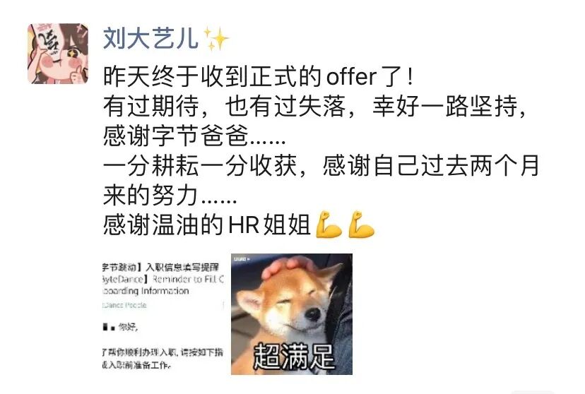 最终她斩获了6个offer,选择了自己最喜欢的字节跳动。