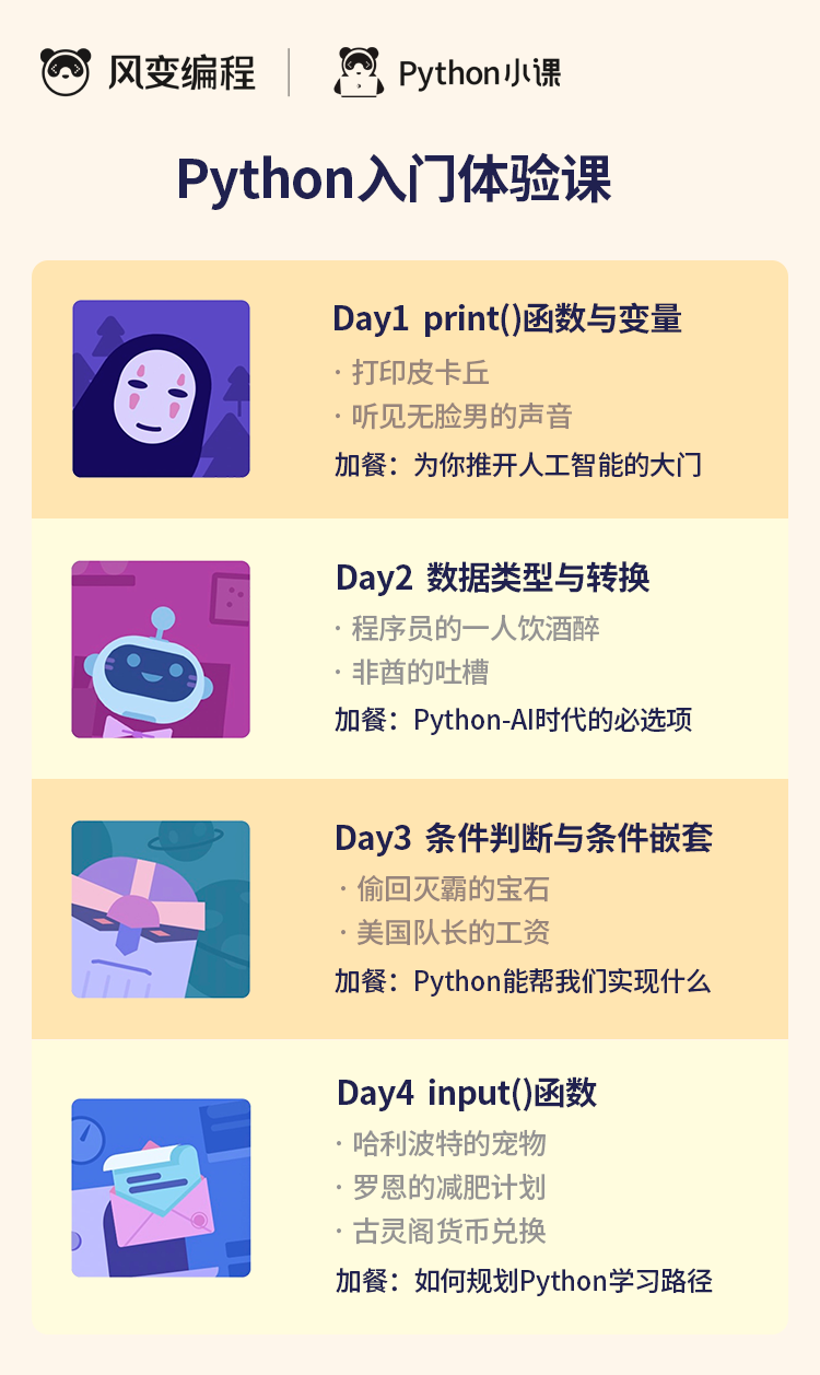 看这有趣的课程表就知道,风变编程Python小课非常与众不同!