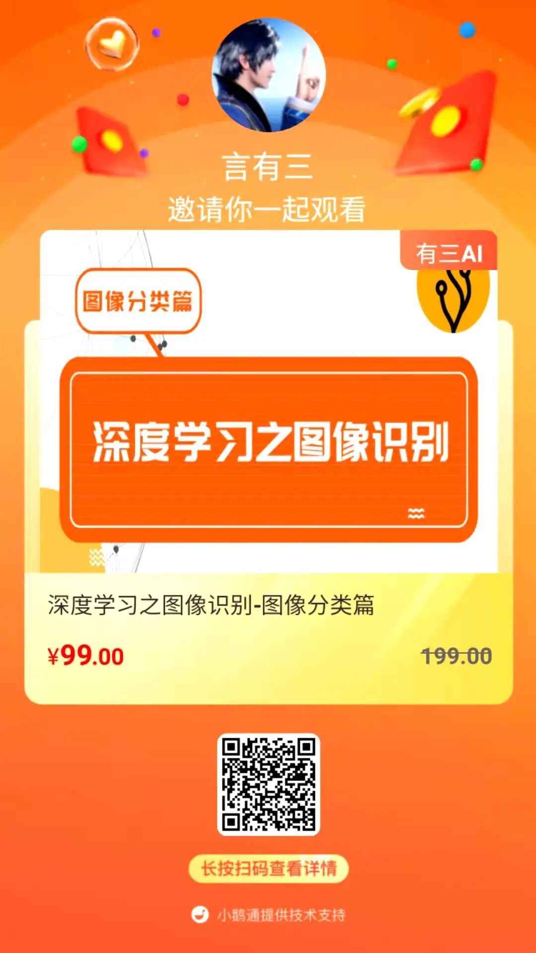 为了帮助初学者解决入门难的问题,有三AI推出《深度学习之图像识别-图像分类篇》课程,让你以最短的时间掌握深度学习图像分类的基础知识并进行代码实践。