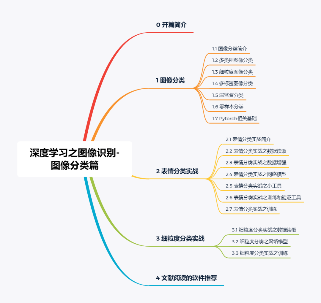 理论部分已经包括了图像分类简介、多类别图像分类、细粒度图像分类,多标签图像分类,弱监督图像分类,零样本图像分类等理论,实践部分已经包括了图像分类,细粒度分类两个实战。后续,还会增加其他分类方向的实战案例,届时会及时通知大家。