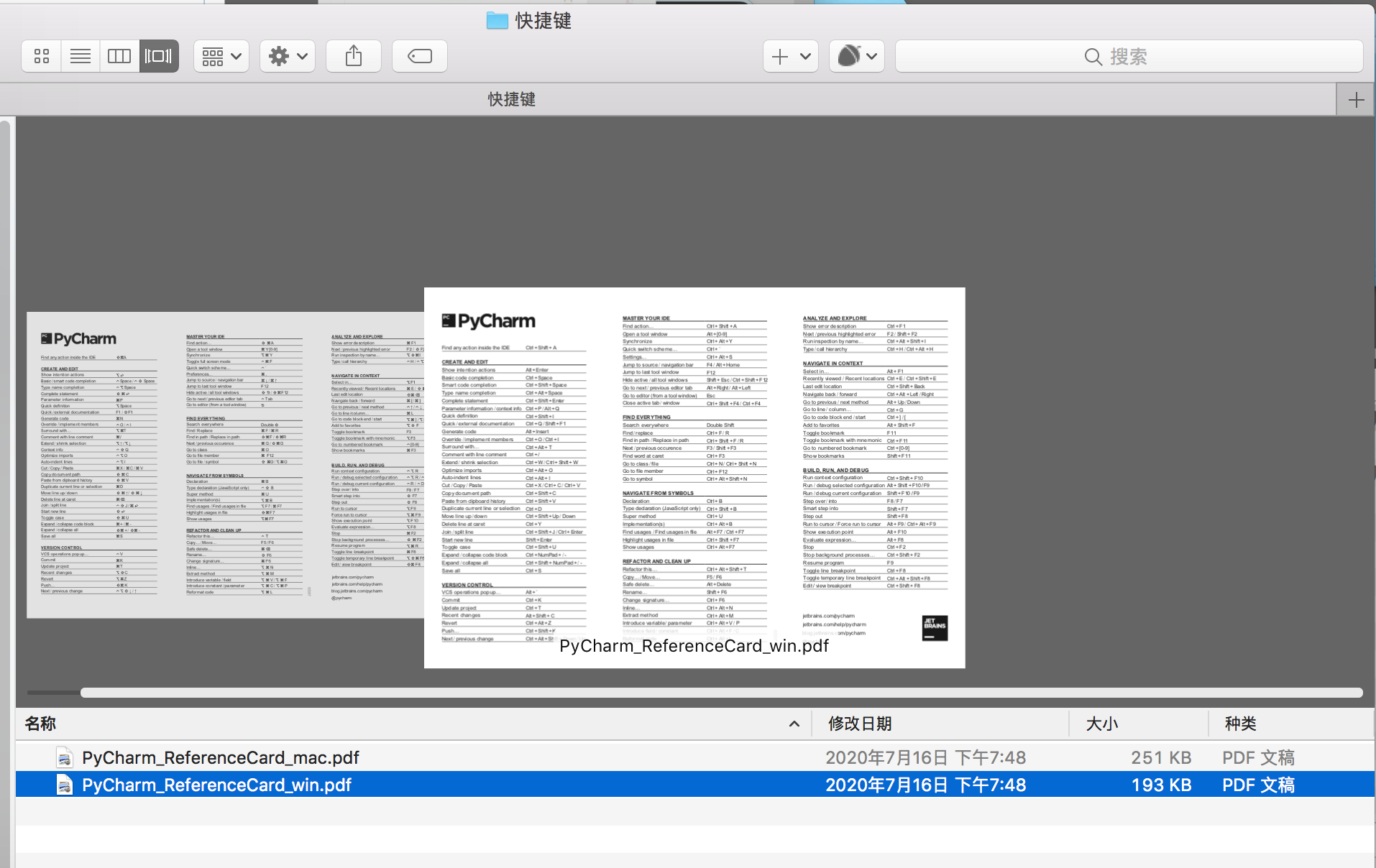 还有 2 张高清的 PyCharm 快捷键一览图,一张 Windows ,一张 Mac,放在桌面上,需要的时候打开一查,非常方便。。